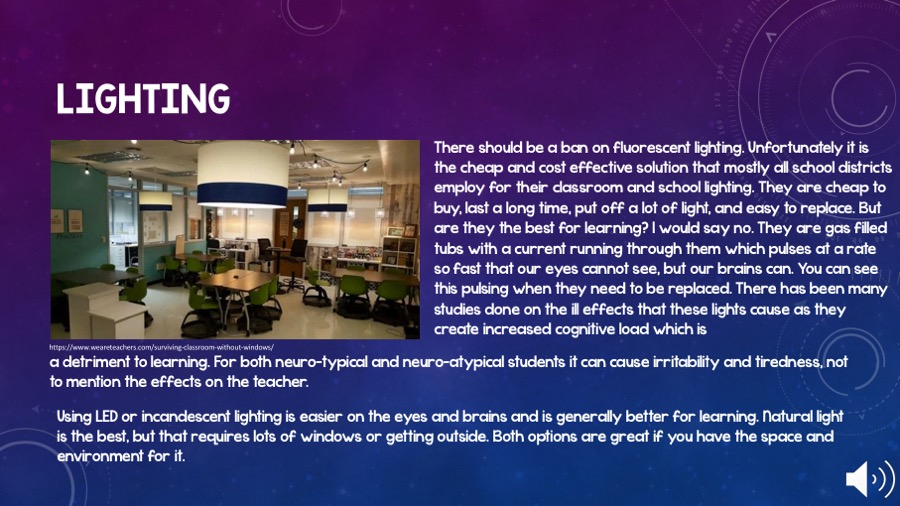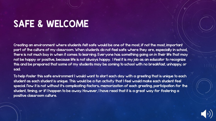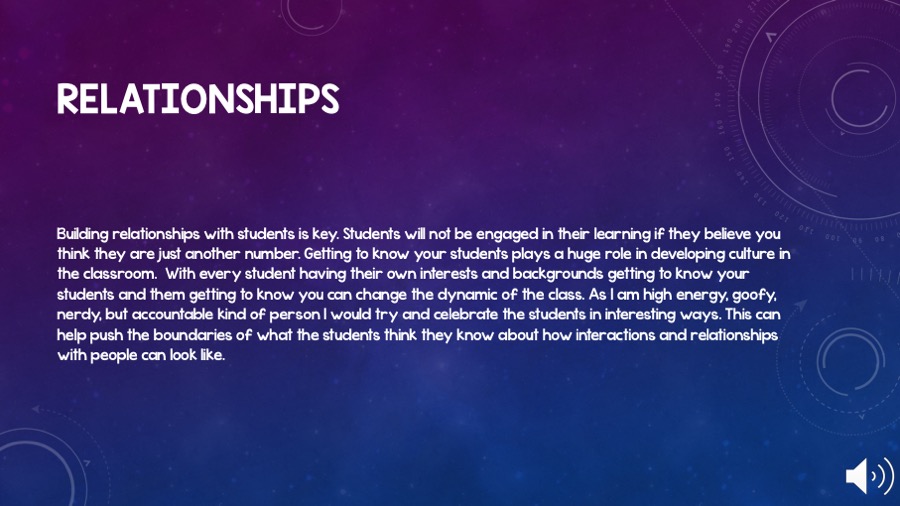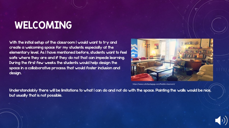 To explore my idea of what I envision my classroom and its community to look like I have included the slides from the Future Classroom project for my VIU EDTE 400 Future Classroom assignment.
