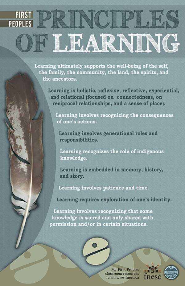 First Nations Education Steering Committee. (2015). First Peoples Principals of Learning. [Infographic]. Retrieved from http://www.fnesc.ca/wp/wp-content/uploads/2015/09/PUB-LFP-POSTER-Principles-of-Learning-First-Peoples-poster-11×17.pdf